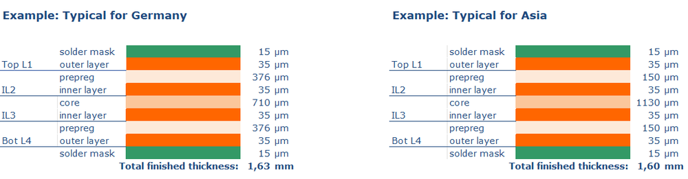 The layer structures for multilayers differ significantly depending on the manufacturer and material manufacturer.
