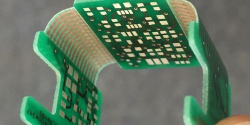 FR4 material is rigid and has become the standard material for printed circuit boards, compared to older materials like Pertinax, FR1 or CEM1. “FR” stands for “flame-retardant” and has a UL classification of 94V0. In the case of rigid-flex circuit boards, it forms the stable part on which components can be assembled. A popular low-cost way to make FR4 boards partially bendable is the so-called "semi-flex", where areas are simply depth-milled to achieve a certain flexibility. Common manufacturers for FR4 base materials are ISOLA, Panasonic, Kingboard, Shengyi and Nanya.